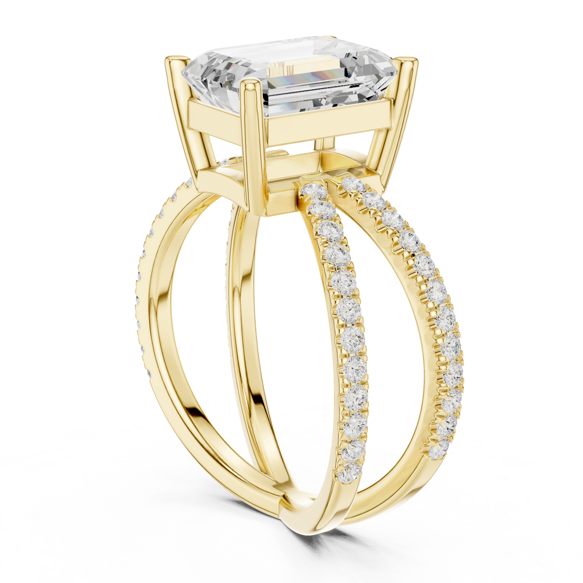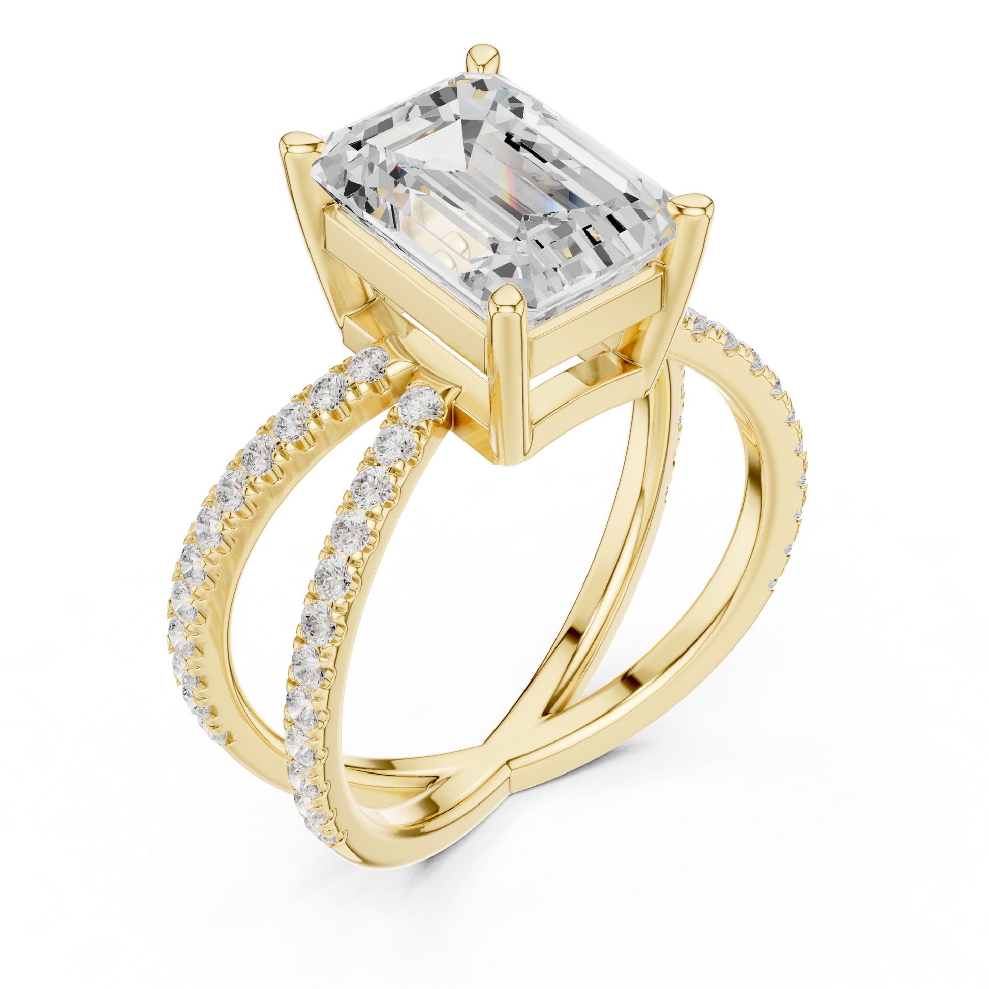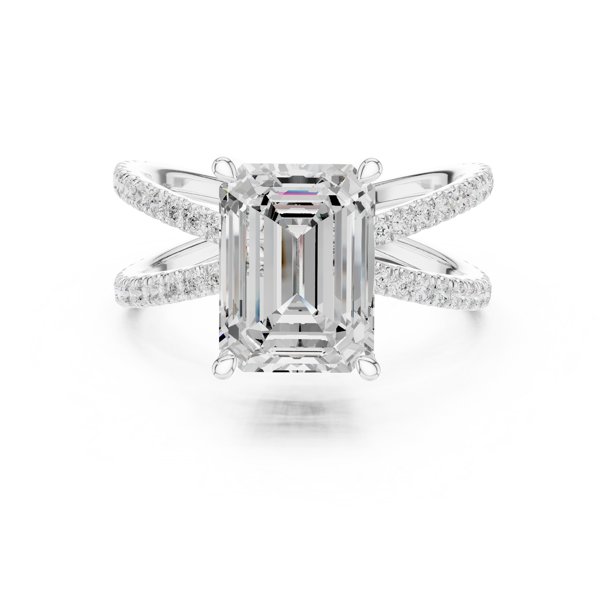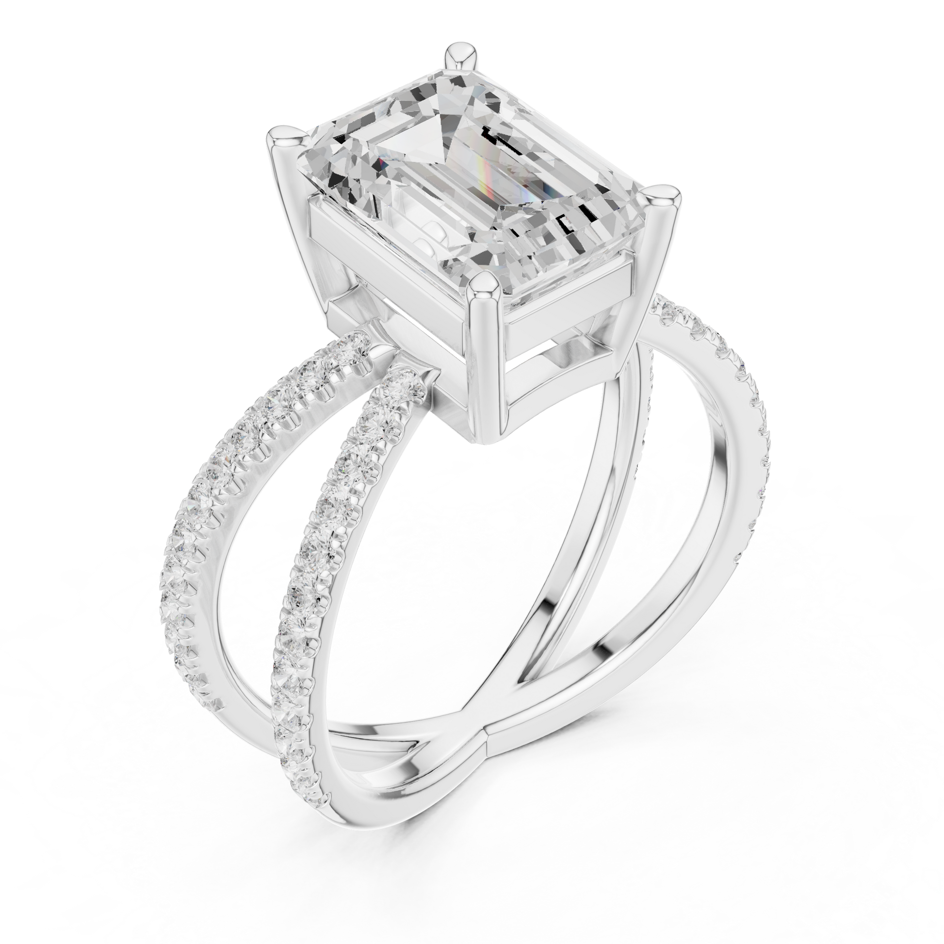 Split-Shank Double Pave Solitaire - Emerald Engagement Ring